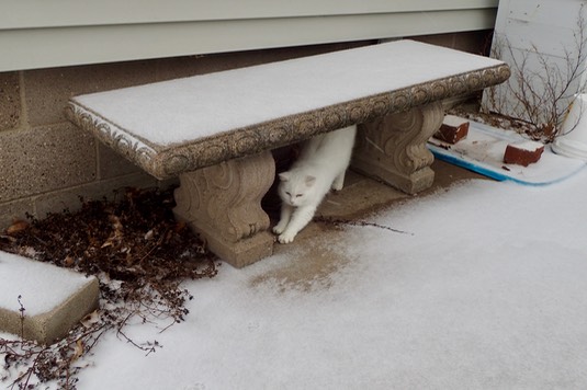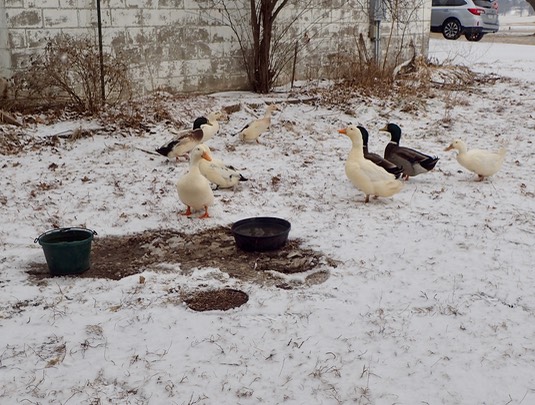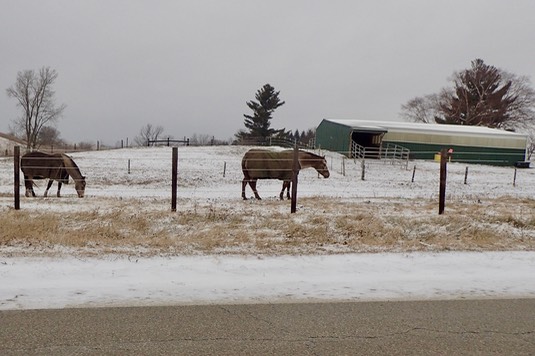 It’s not that cold, about 30, so Iris and Rose are having a walk around the pasture, looking for a blade or two of grass before breakfast: