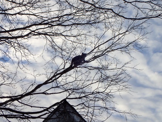 That’s a skinny, slippery branch, kitty, and you’re way, way up in the air!