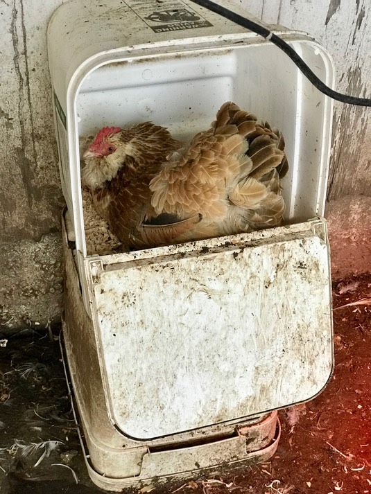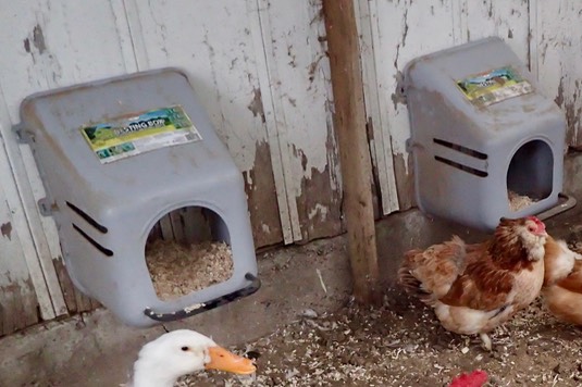 As we mentioned yesterday, we relocated the hens’ nesting boxes to where we hope they’ll be easier to access: