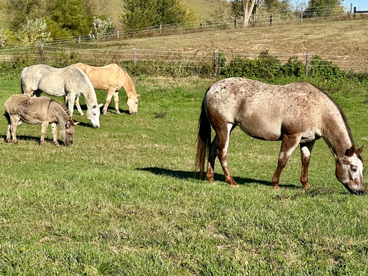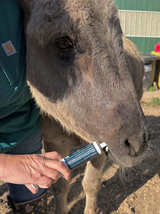 The sugar level of grass can spike in the spring and autumn, and when we get too much sugar, it can make our feet sore. So Ann is giving me some pain medicine: