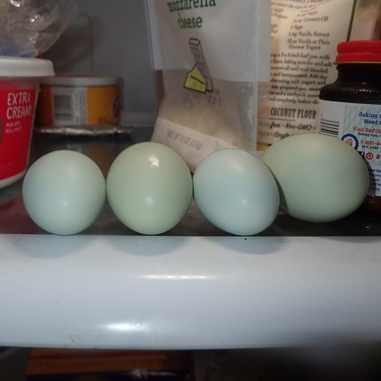 Finally, two of these eggs look a little bluer (less turquoise) than the others:
