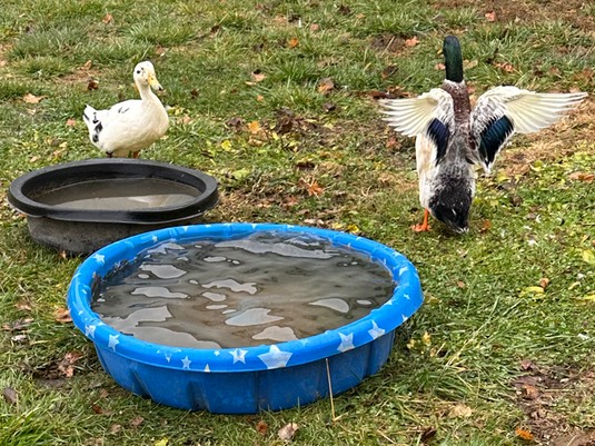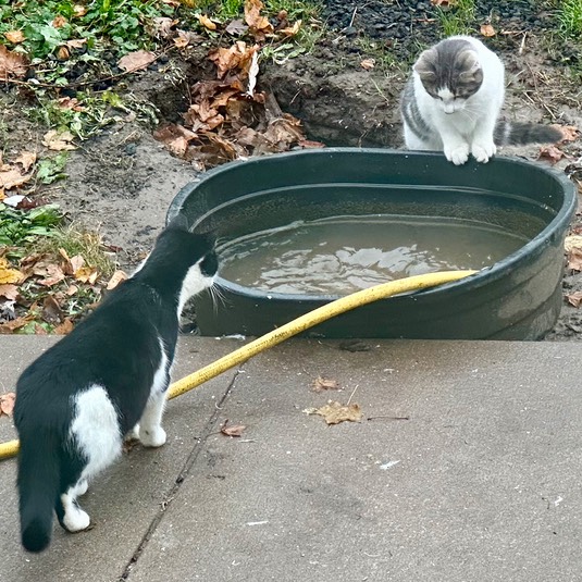 A little earlier, Schroeder and Patches were supervising the duck water:
