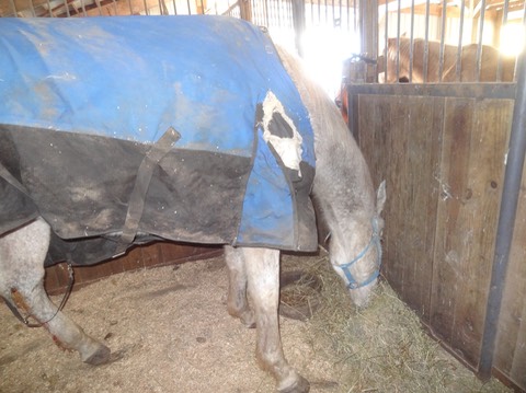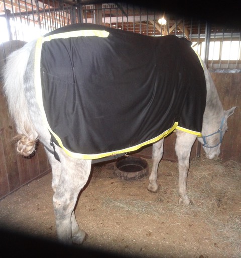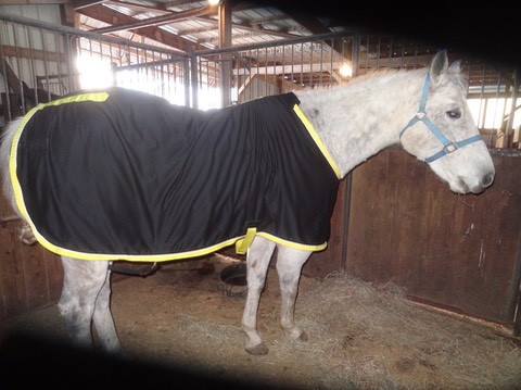 Our poor Henry has a joint or tissue infection in his leg, and a temperature of 102. He saw the vet Thursday evening, and is resting in his stall, wearing a blanket because it’s so cold!