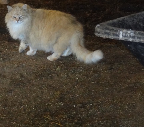 This way, she can keep company with the other kitties, without having to leap up when a shovel or broom comes threateningly close. 🐴