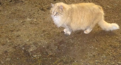 Henry, by the way, is feeling still better. Here he is standing with RC by the water tank this morning: