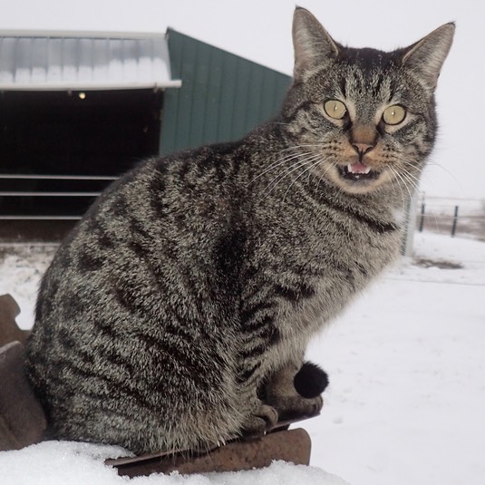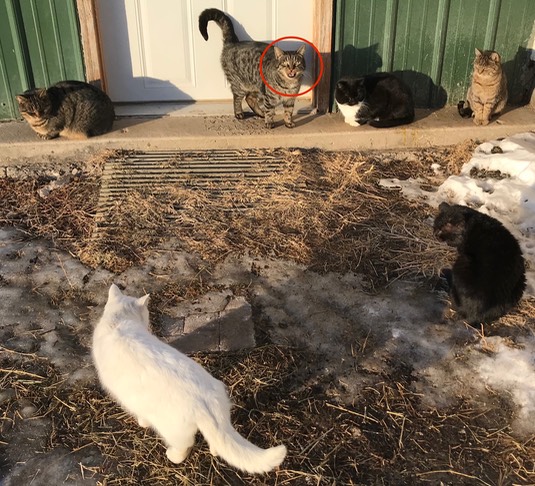Poor Betty got locked in the feed shed, all night. 😿 Onslow says, “You should know better. When they bang on the walls, hollering, ‘There better not be any kitties in here!” they mean it: