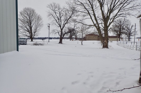 The “road” in the snow, between the farm house and our stable, is covered with frozen rain. Breakfast had to wait until some salt was put down: