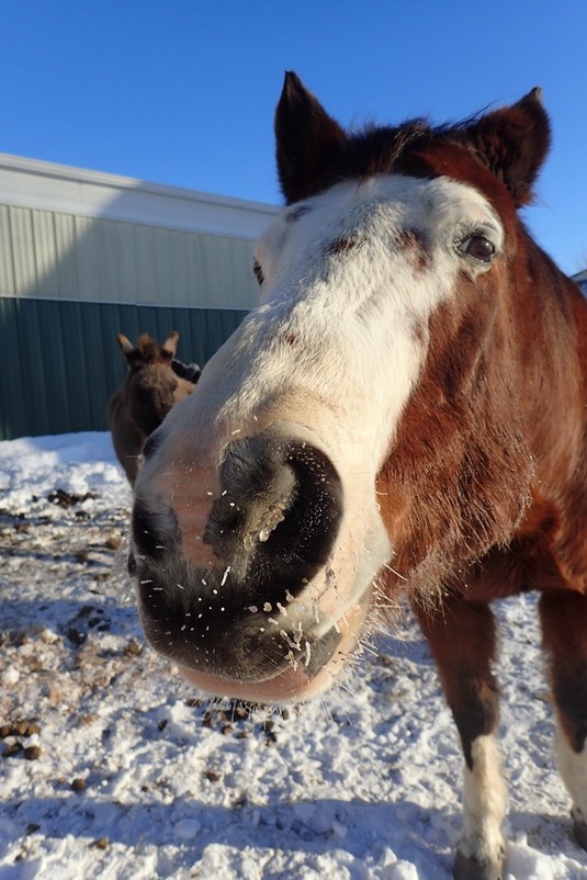 It’s bad enough that it’s 11℉, but the wind makes it feel like -9. Come in the stable and warm up, Jewel!