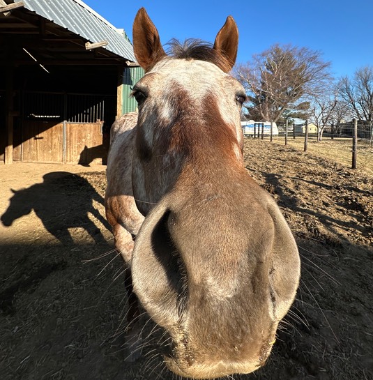 We hope he gets better. Winters are hard on everybody, and Baldie has seen TEN of them. 🐴