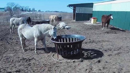 The above pictures are from the security camera that looks over the paddock. You can see that Iris, RC, Chezzie and Stormy (we think) were sunbathing. 🐴