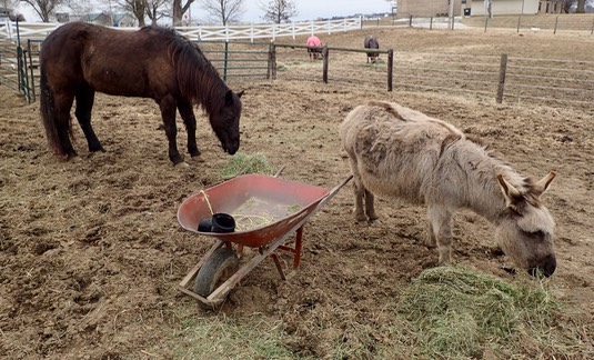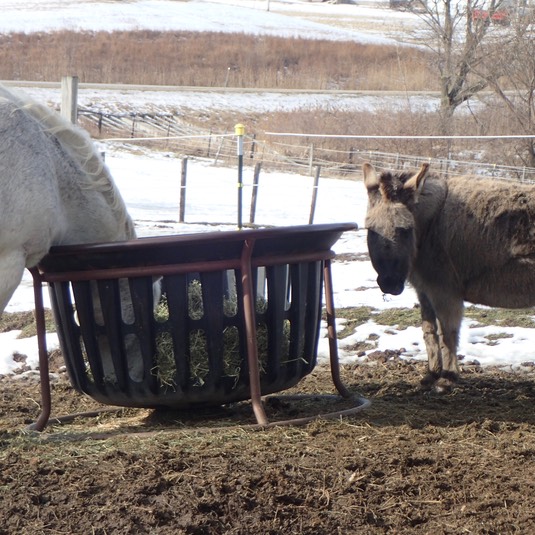 Please get off our hay, Onslow—we’re hungry! 🐴