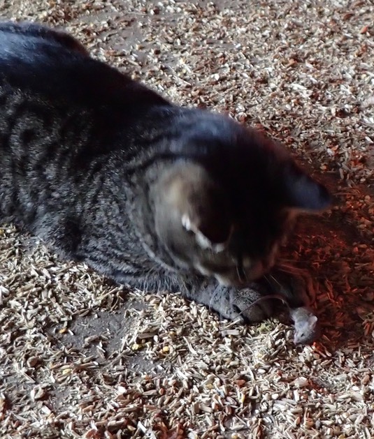 A mouse!—Don’t worry, mouse, he’ll probably just let you go. 🐭