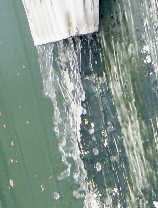 Water is pouring off the stable: