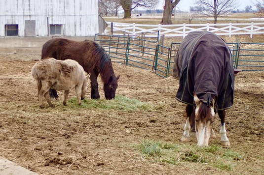 Henry and Stormy have their hay to themselves this morning: