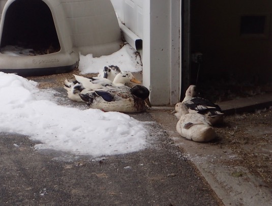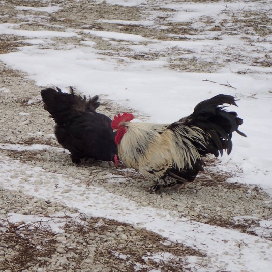 The birds have been literally cooped up for days. So since it’s going to be above freezing, the fowls are enjoying some fresh air: