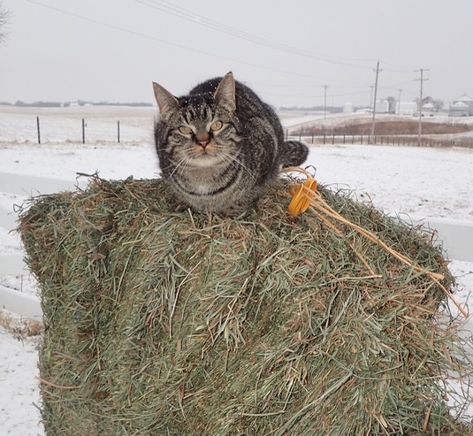 Zelda is enjoying the view from the top of the hay. As you can see, we’re almost up against the roof!