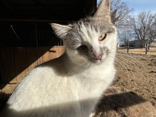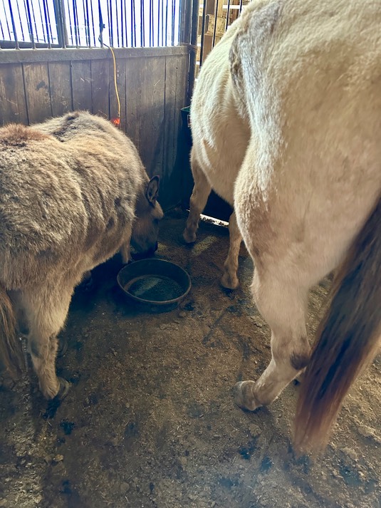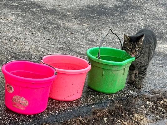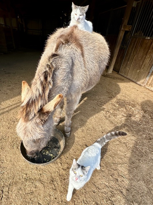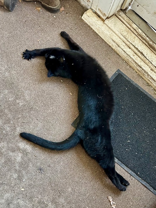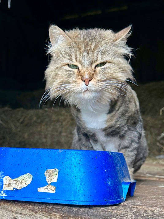Here’s a very quick video of Rose, after completing her task and going to her stall. She can’t leave without shoving me out of the way (cat news after video):