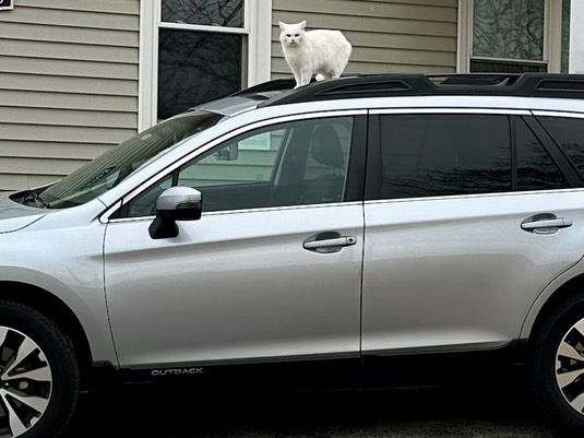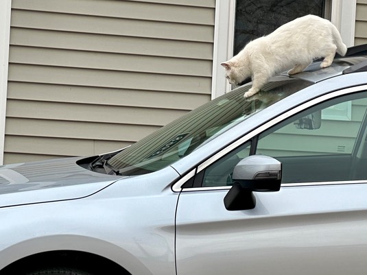 He makes sure only “authorized vehicles” park in the driveway. 😺