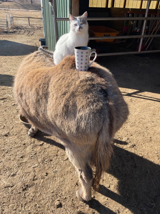Good afternoon! We’ve been occupied with our friend, Travis, doing our hooves, etc. So we just have one picture for you: