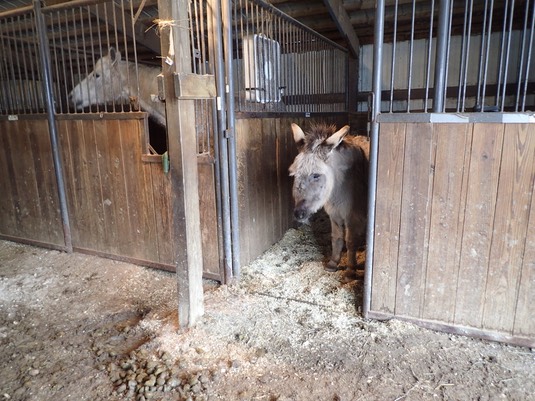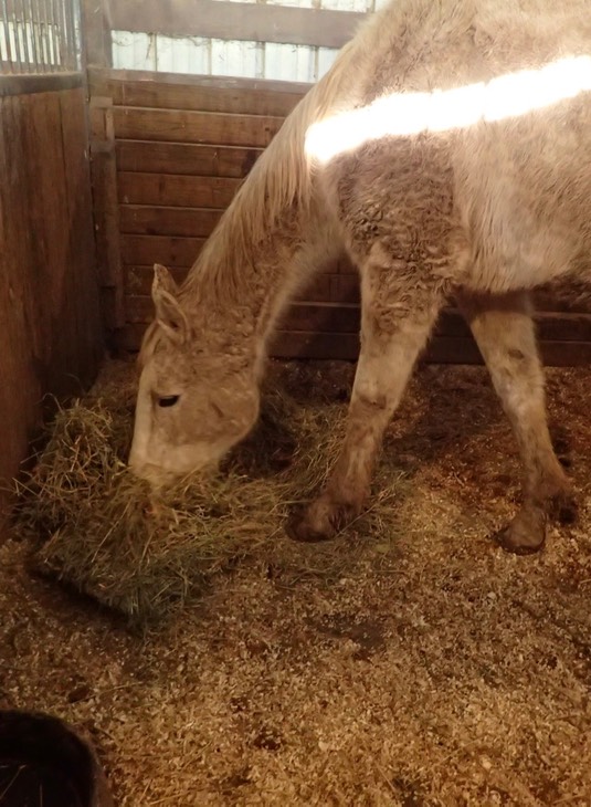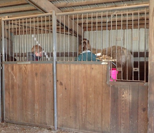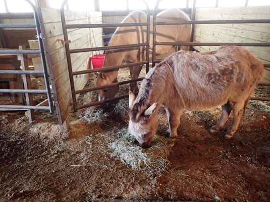 But Stormy and Iris are still stuck in their stalls, munching hay: