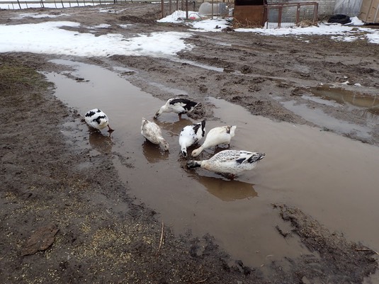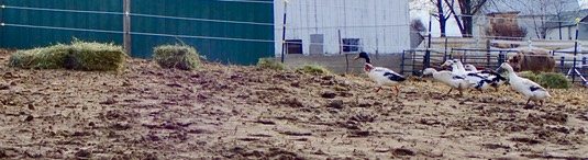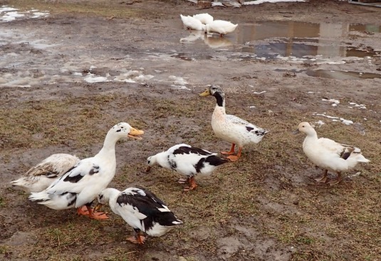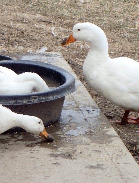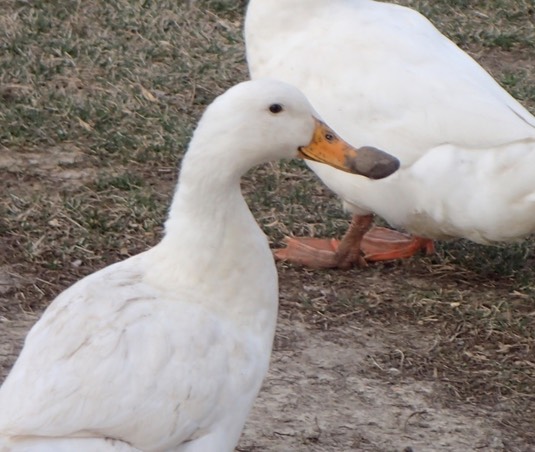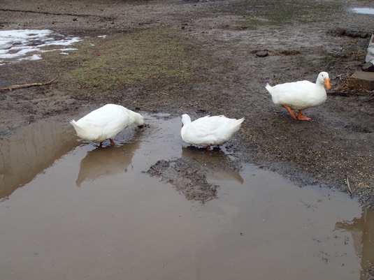 The ducks have been filling up on the unearthed bugs and worms. Look at the mud on their bills!