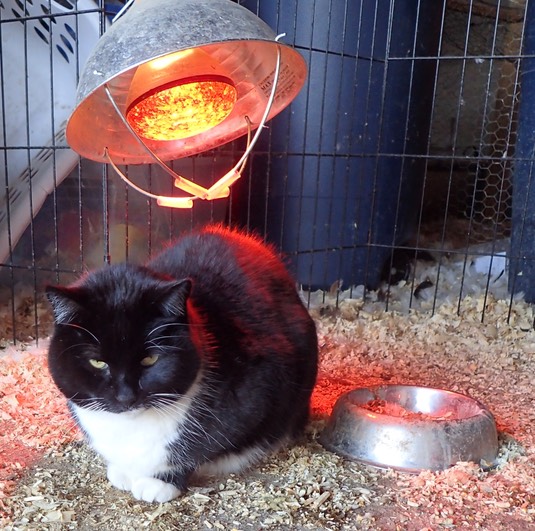 Speaking of heat lamps, here’s Schroeder staying toasty:
