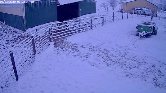 Yesterday morning, we were fed breakfast early, at about 6:30. Here we are coming in from the far pasture, where we were at the time: