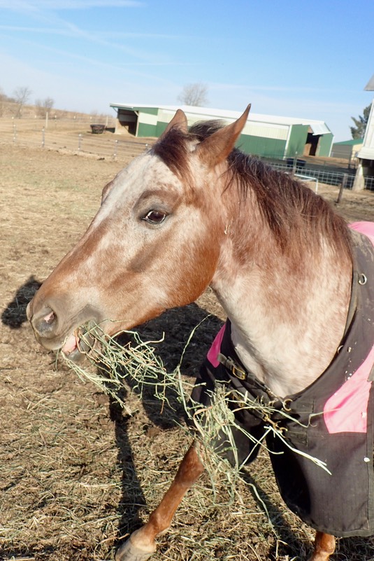 Finally, let’s spend 15 seconds watching me eat some of the greenest hay we’ve had all winter:
