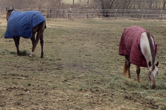 One cat is ok, two cats are suspect—especially when they won’t get off my hay: