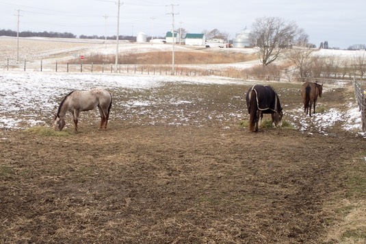 Since Jewel and Rose will be in their stalls today, they’re stretching their legs in the arena: