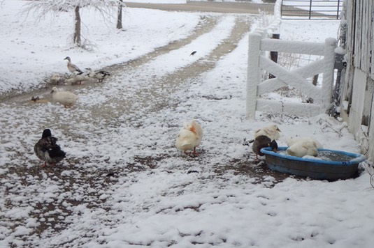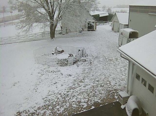 Ann’s having to let the girls out through the front gate—it’s just too muddy by the little gate: