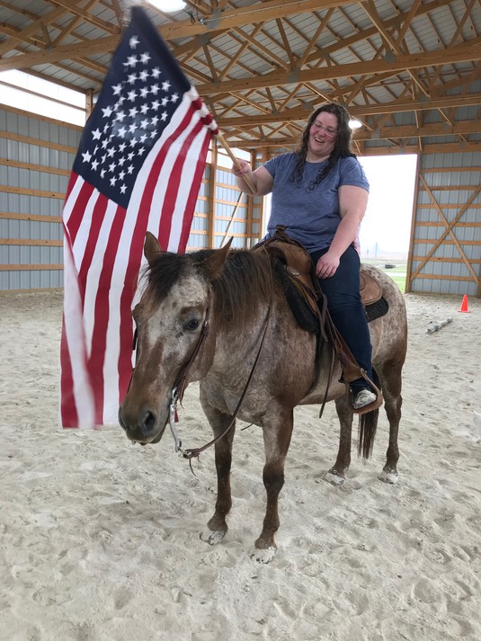 Yesterday, Mary and Rose practiced with the flag. Galloping with it is something they do at the beginning of horse shows: