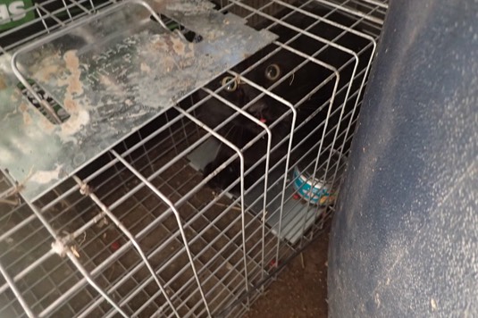 So what have the cats been up to? Well, Betty got caught in the raccoon trap:
