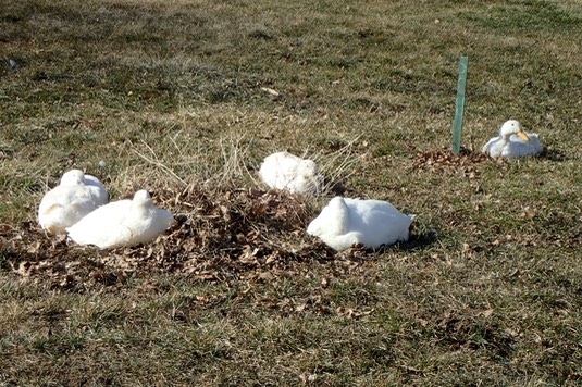 The same goes for you, chickens. Get out of the duck pen and into the sun: