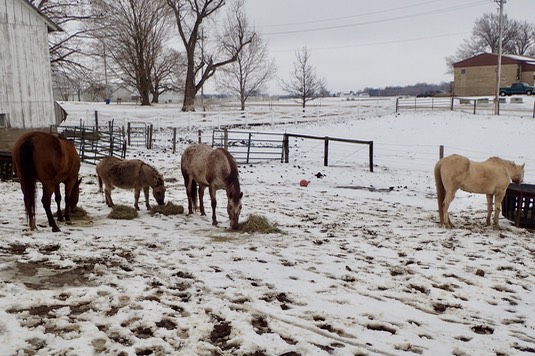 All of our hay was put in the front pasture, so we can stay off the mud: