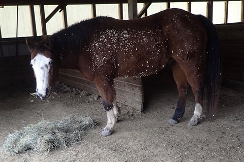 Chavez’s legs have been hurting him recently, so he’s having his hay where he won’t have to walk far: