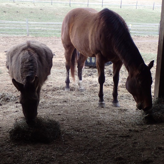 Not much going on this morning, so here are a few of us getting our after-breakfast carrots! 🐎