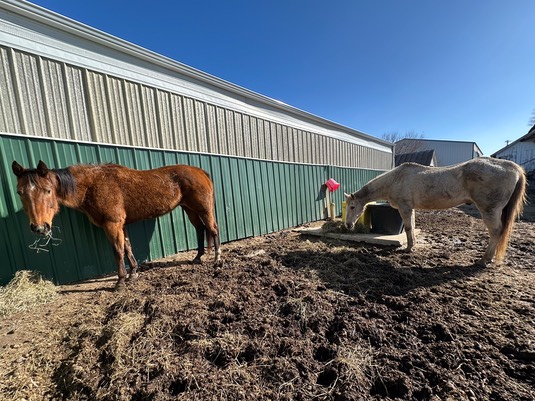 Go inside, Stormy and Jewel—I know it’s noisy, but you’ll stay drier. 🐴