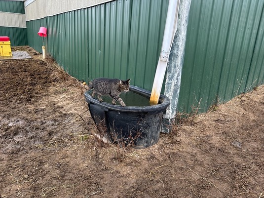 But it’s been so rainy, she spent the night in the tractor garage with the rest of the cats, so she wouldn’t get wet this morning: