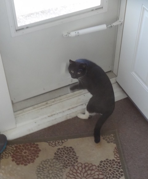 ”Oh, so that’s a cat. GET US OUTTA HERE, HUMAN MOMMY!"
