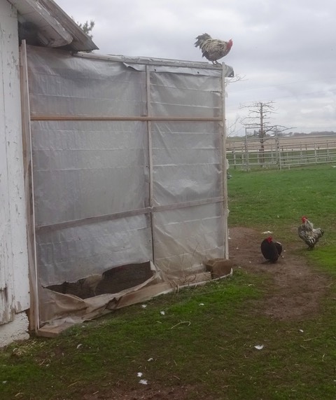 The roosters (Hansel, Mildred and Baldy) pay us a visit.