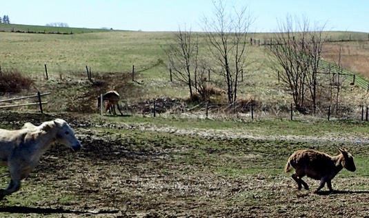 Oh, and here I am running in from the far pasture yesterday, for dinner: