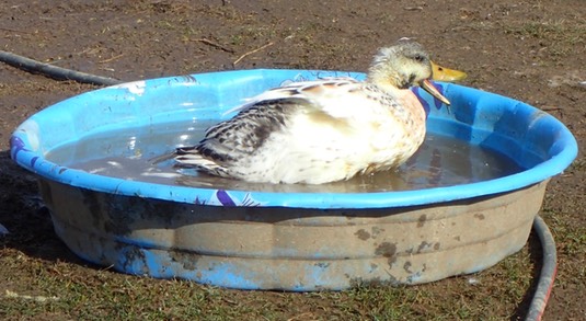 Sometimes the ducks like their bath water straight from the pump: