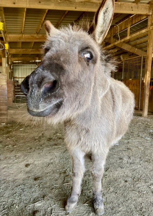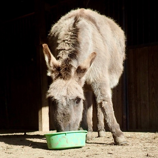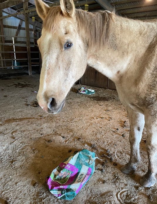 Iris says, “Good morning! I’m ready for my alfalfa pellets and hay!”
