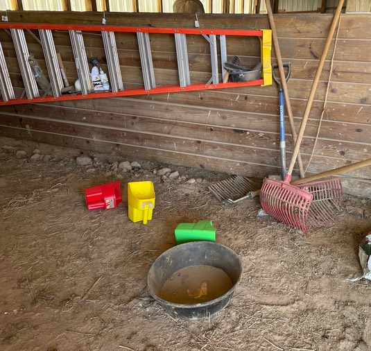 How did the the rakes get disarranged, and our food scoops get knocked off the ladder (which is used as a shelf)?