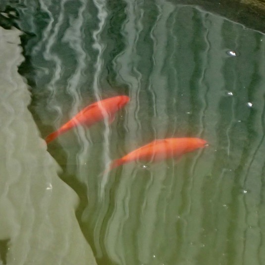 Well, at least the goldfish are getting loads of clean water, as it runs off the roof and down the drainpipe, into their tank: