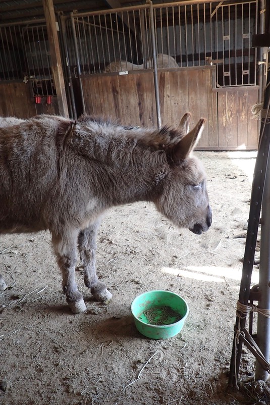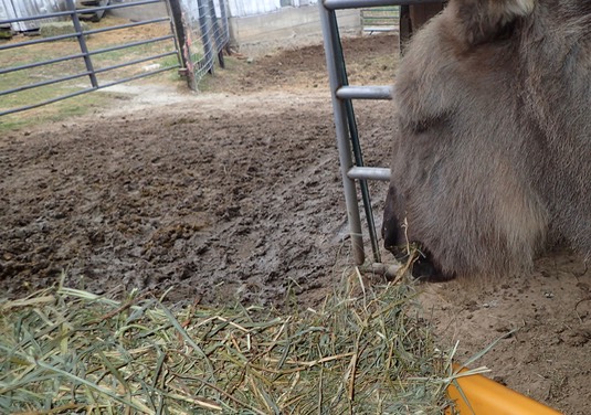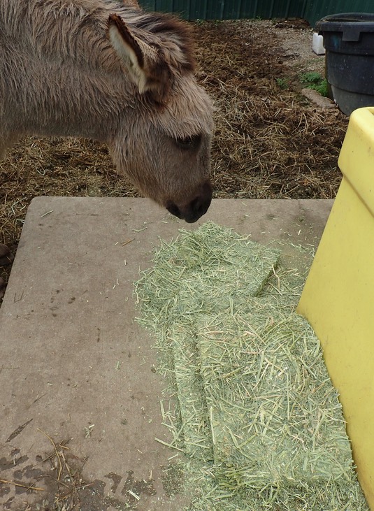 Anyway, this morning we’re having the store-bought hay (alfalfa and orchard grass “forage” they call it) that we bought in case Farmer Rich couldn’t help us. It doesn’t taste bad, but it’s not “home cooking.”