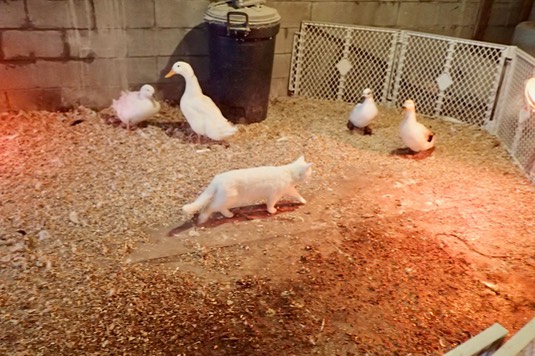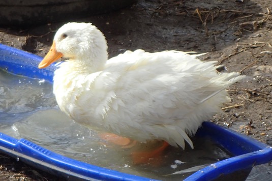 Alfred is seeking shelter in the duck garage. It’s the first time he’s been in there: