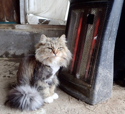She spent last night in the farm house, tucked under the couch. It’s just too cold outside without fur!