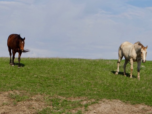 All the rain has greened up the grass. Rose and Iris are already out grazing: